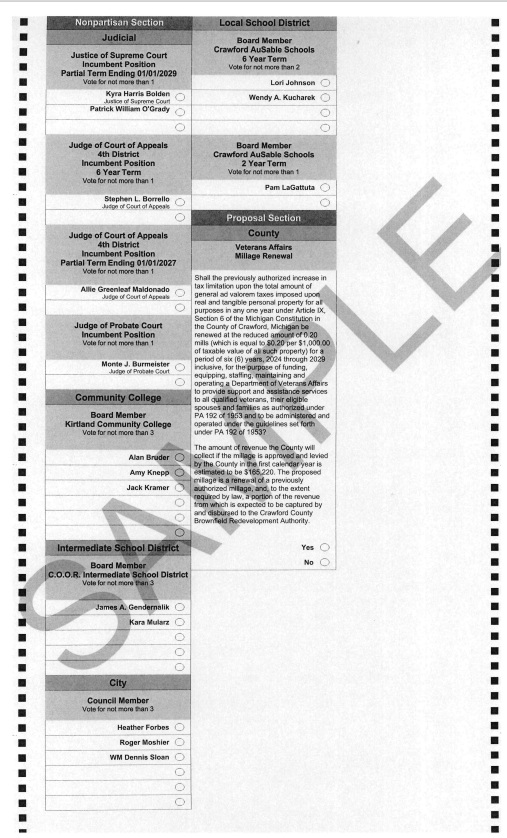 Home News SAMPLE BALLOT ~ NOVEMBER 5, 2024 GENERAL ELECTION by Laurie Stark Tuesday, September 24, 2024 SAMPLE BALLOT NOVEMBER 2024 ELECTION Link to this Article